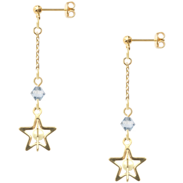 ブルーシェイドのスワロフスキーと立体スターパーツが、耳元で華やかに輝きます。