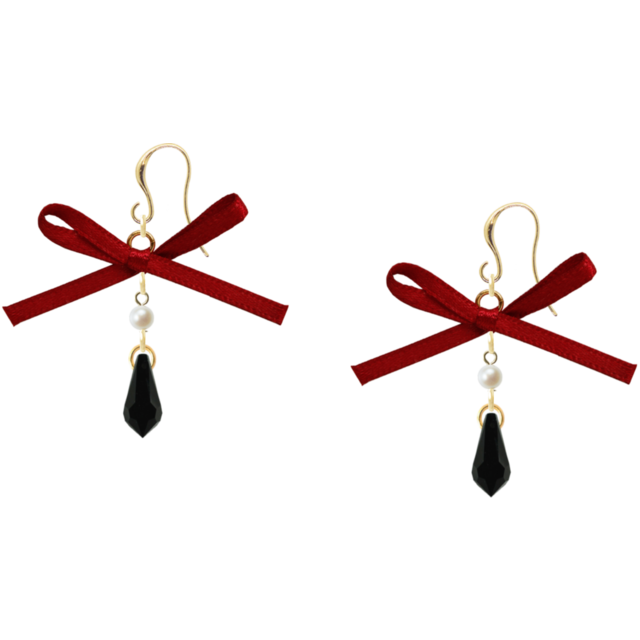 上品なサテンリボンと淡水パールが耳元で華やかに輝き、優雅な印象を与えます。