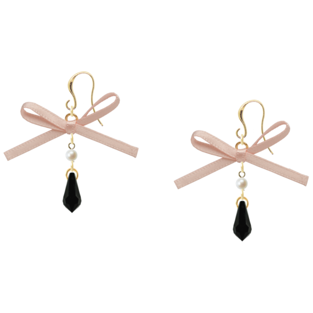 上品なサテンリボンと淡水パールが耳元で華やかに輝き、優雅な印象を与えます。