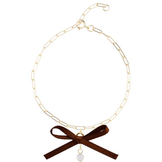 エレガントな雰囲気を演出するクリスタルのチェコビーズと、可愛らしいリボンが絶妙なバランスで調和しています。